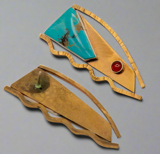 Unique Brass/Turquoise/Carnelian Earrings