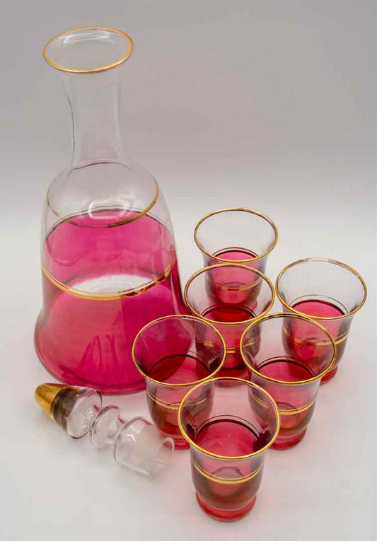 Vtg. Cranberry Decanter w/6 Cordials