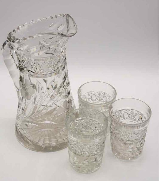 Cut Crystal Pitcher & 3 Juice Glass