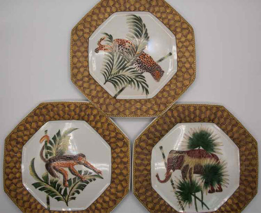 Set of 10 Leaf Pattern Pottery Salad Plates