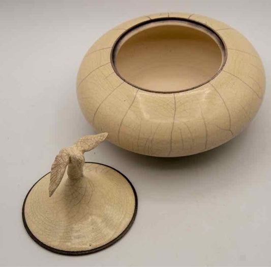 White Crackle Trinket Dish w/ Bird Lid