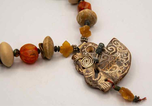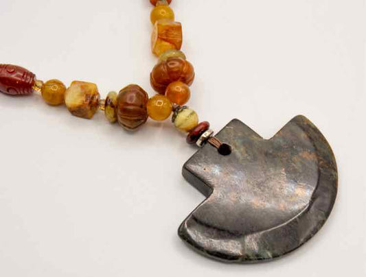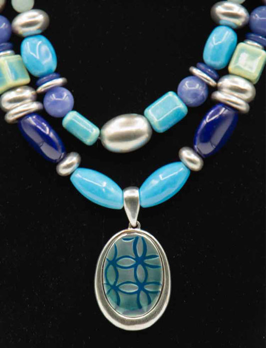 Stone Beads w/Abstract Pendant/.925 Necklace