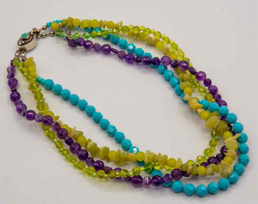 Vtg. .925 Purple/Green/Blue Beaded Necklace