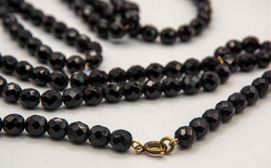 Vtg. Long Faceted Glass Bead/Black Necklace