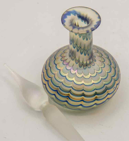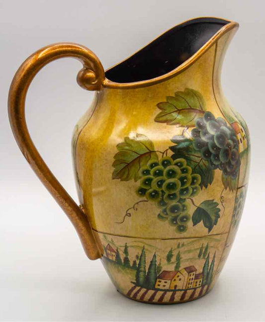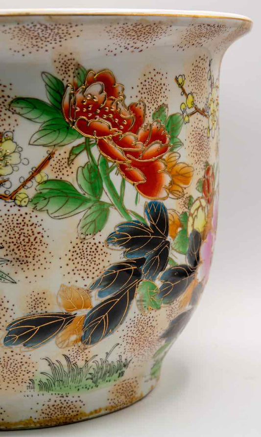 Painted Asian Vase w/ Gilded Gold Rim 9"