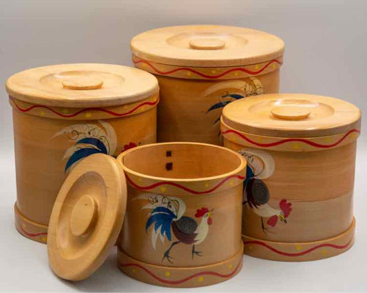 4pc Vtg. Rooster Nesting Wood Canisters