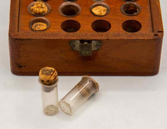 Antique Homeopathic Boy w/12 Glass Bottles w/Cork