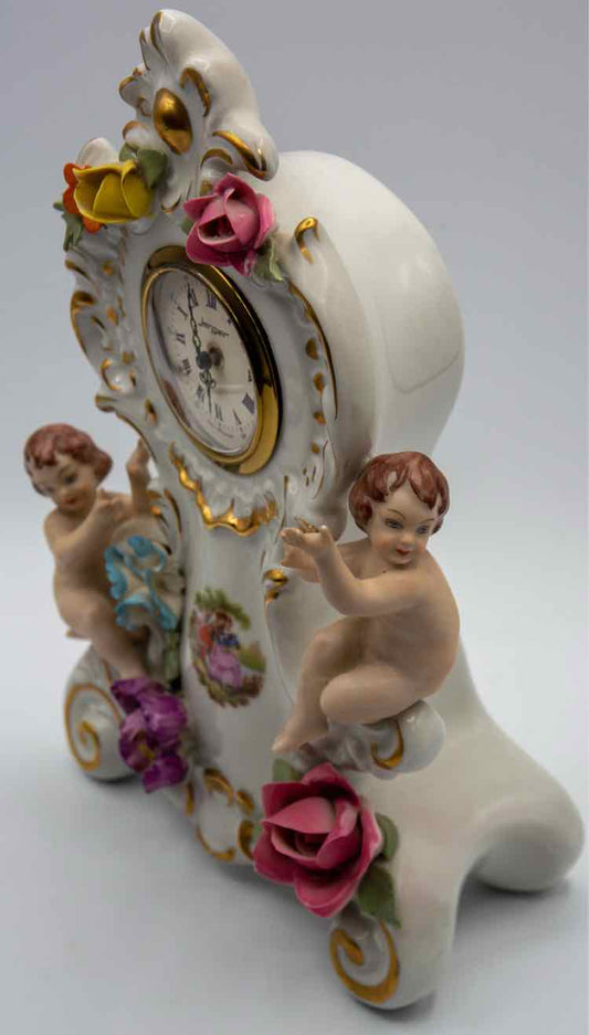 Vtg. Dresden Cherub Mantel Capodimonte Clock