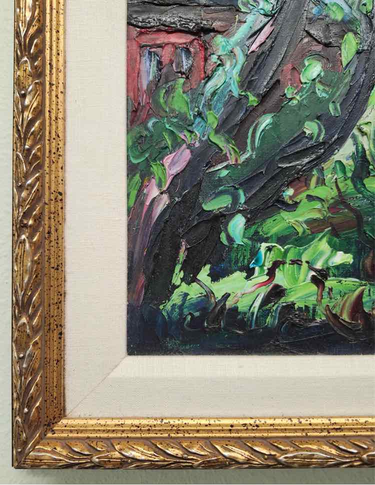 'Carmel Home' is an evocative oil painting by renowned artist Emeric Vagh Weinmann, measuring 20.5" x 24.5". This striking piece captures the warmth and character of a cherished residence, rendered in rich, expressive brushwork.
