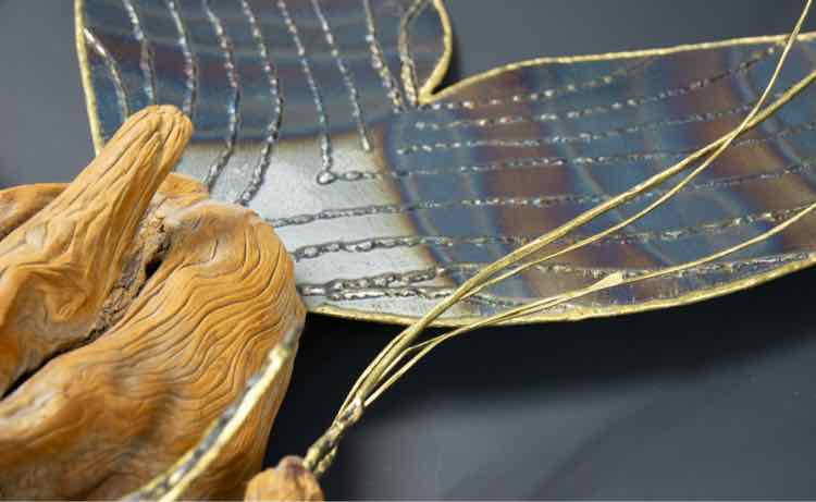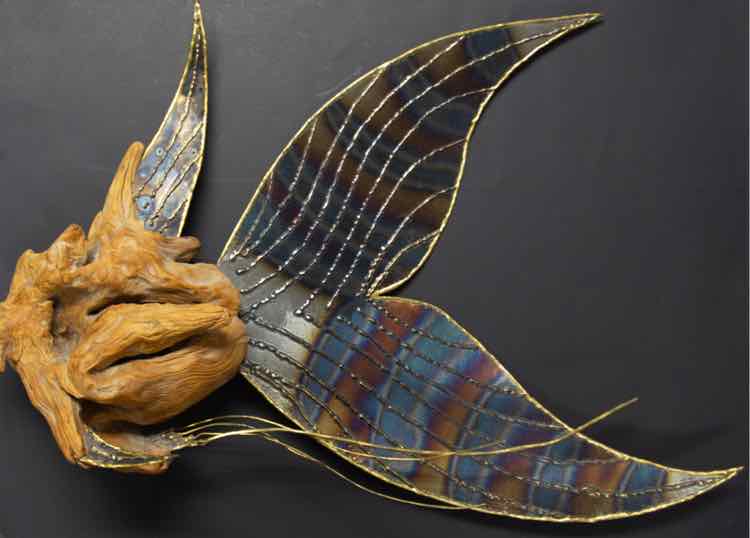 DRIFTWOOD/METAL ANGELFISH SCULPTURE