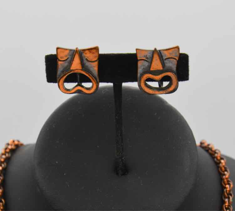 F.Rebajes Copper Drama/Comedy Necklace/Earring Set